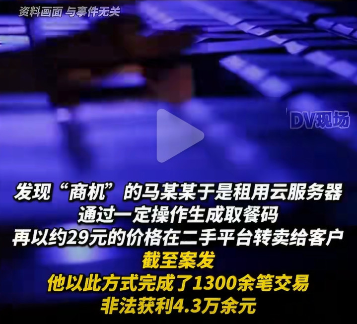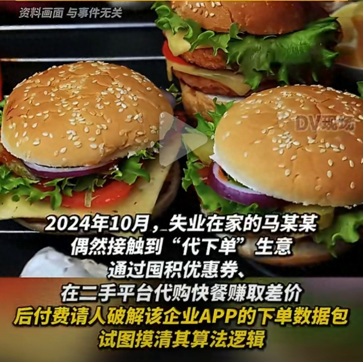 这简直是“天上掉汉堡”!马某某立即租用云服务器,开始批量“生产”取餐码,再以约29元的价格在二手平台转卖。截至案发,他已经完成了1300余笔这样的交易——相当于“吃”掉了价值7.6万多元的汉堡套餐,自己从中获利4.3万余元。
